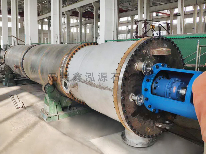 在此過(guò)程中,輕組份(低沸物)順流(和液膜同向)穿過(guò)臥式薄膜蒸發(fā)器進(jìn)入汽液分離器,在此處經(jīng)汽液分離所產(chǎn)生的液滴和泡沫被擊碎進(jìn)入液相(高沸物),被分離后的汽體進(jìn)入外置換熱器或下道工序;重組份(高沸物)沿著加熱壁面爬升到小端出口排出。